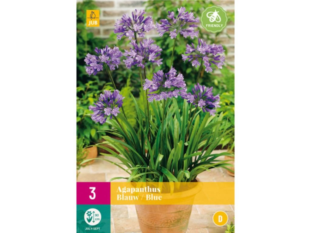 Agapanthus blue je elegantná letne kvitnúca trvalka s typickými guľovitými súkvetiami v sýtych až stredne modrých odtieňoch. Kvety sú trúbkovité, husto usporiadané a vyrastajú na pevných, vzpriamených stonkách nad trsmi úzkych, remienkovitých listov. Rastlina pôsobí čisto, harmonicky a veľmi dekoratívne, vynikne ako solitér aj v skupinovej výsadbe. Modrá farba kvetov je nadčasová a ľahko kombinovateľná s inými rastlinami. Doba kvitnutia je od júla do augusta. Výška rastliny je cca 60-90cm, šírka je cca 40-60cm.