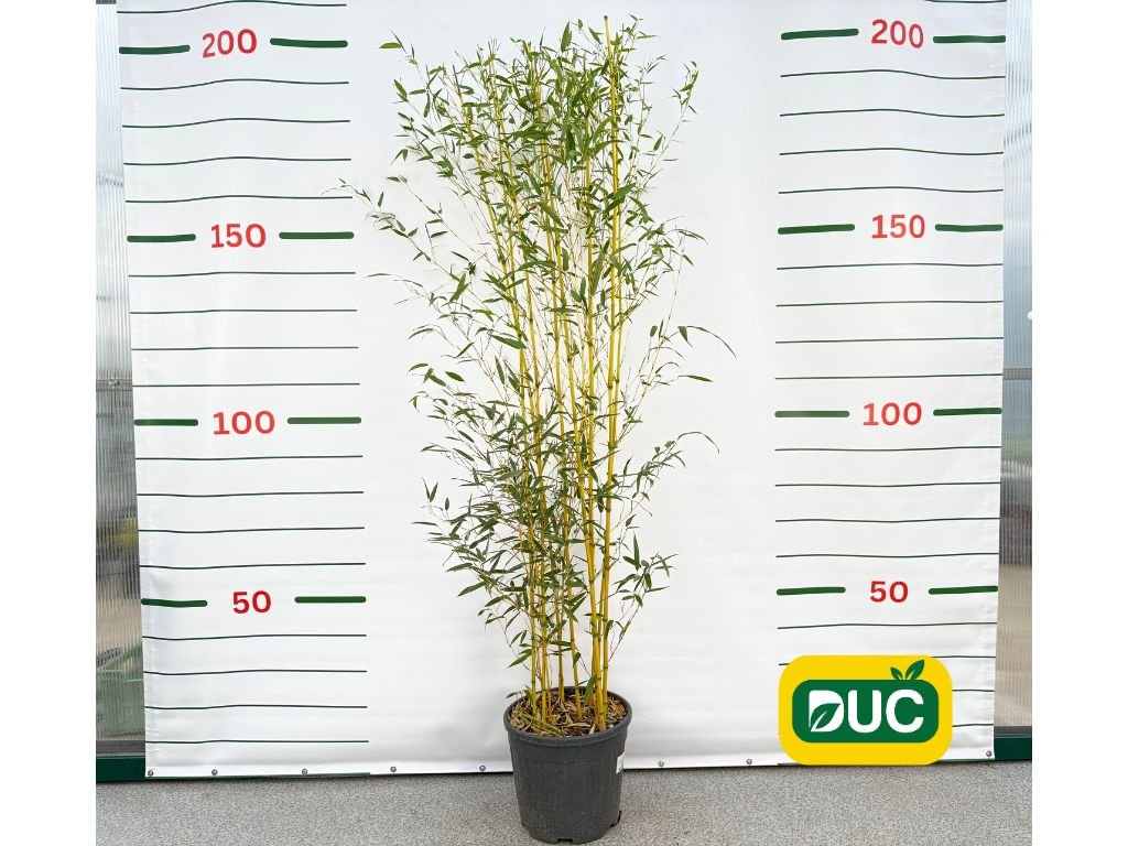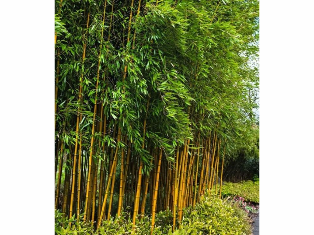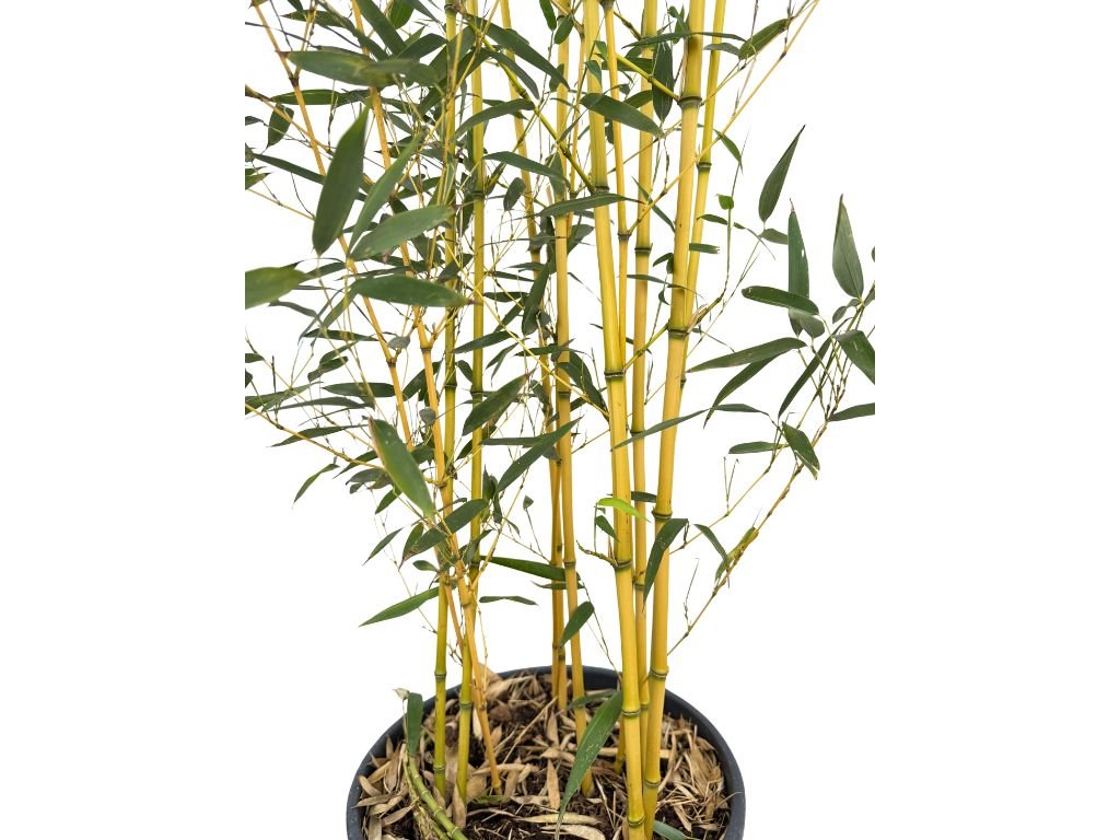 Bambus Phyllostachys aureosulcata 'Aureocaulis' je mimoriadne atraktívny, stálozelený bambus, ktorý vyniká výrazne žltými stonkami so zelenými ryhami, predovšetkým v mladosti veľmi nápadnými. Stonky sú vzpriamené, štíhle a pružné, s priemerom 2–4 cm, často sa môžu zvlnením mierne vychýliť, čo dodáva rastline jedinečný vzhľad. Listy sú úzke, kopijovité, sýto zelené, husto usporiadané, čím rastlina pôsobí vždy sviežo a dekoratívne. Tento druh dorastá v našich podmienkach najčastejšie do výšky 4–7 metrov a vytvára husté porasty vhodné ako zástena, živý plot alebo dominantný solitér. Bambus je známy rýchlym rastom, vysokou mrazuvzdornosťou a dobrou odolnosťou voči vetru. Vďaka svojmu nápadnému sfarbeniu stoniek sa často využíva aj v moderných záhradných kompozíciách.