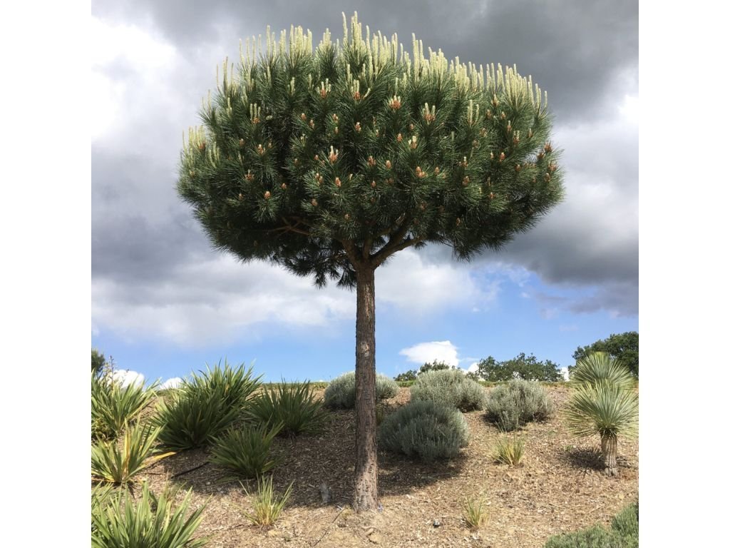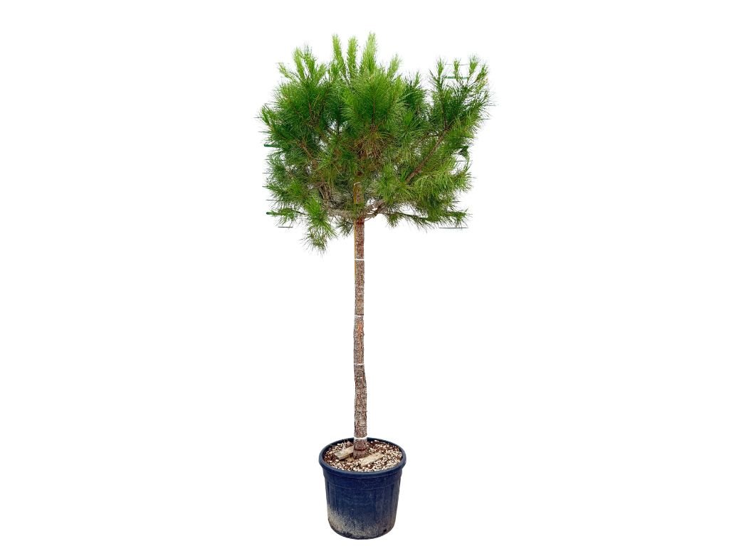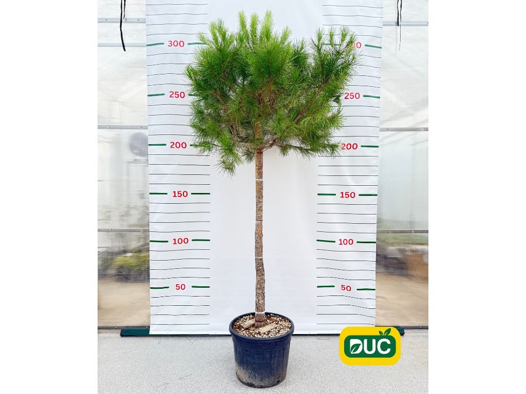 Borovica píniová na cca 150 cm kmienku, výška 260-280 cm, obv. km. 16-18 cm, kont. 70 l