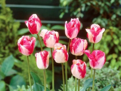 Plnokvetý tulipán s premenlivou farbou kvetov - biela, ružová a červená. Elegantný do výsadieb aj vázy.