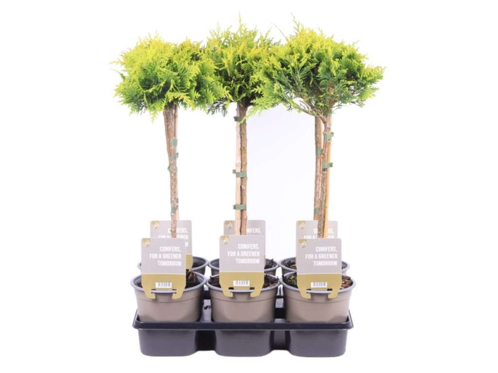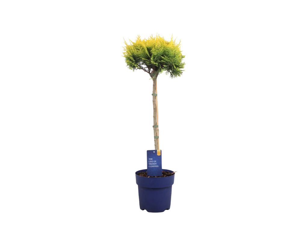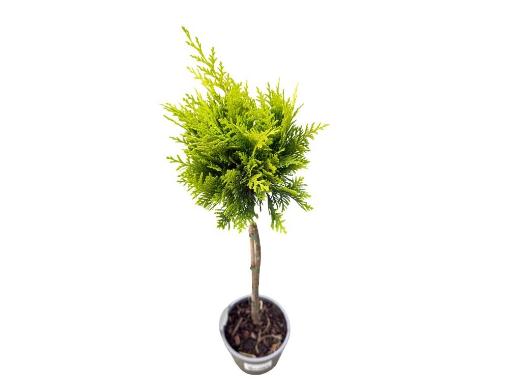 Chamaecyparis lawsoniana ‘Stardust’ na kmienku je elegantná, stálozelená drevina s výrazne zlatým mladým ihličím, ktoré na slnku žiari a v polotieni jemne zelenie. Tvorí hustú, pravidelnú, skôr kužeľovitú korunu so stredne rýchlym rastom. „Na kmienku“ znamená, že výška kmienka zostáva rovnaká – do budúcna sa zväčšuje len koruna. Najlepšiu farbu dosahuje na slnečnom, chránenom stanovišti v ľahkej, priepustnej, mierne kyslej pôde. Je vhodný ako solitér do predzáhradky, k terase či vstupu do domu, aj do veľkých nádob. Vyžaduje dobrý odtok vody (nemá rád premokrenie) a ochranu pred zimným vysušujúcim vetrom.