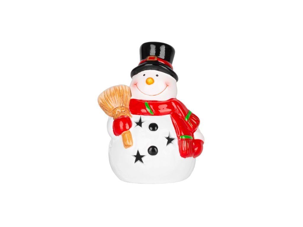 Dekorácia MagicHome Vianoce, Usmiaty snehuliak, LED, terakota, 8,5x8,2x12,5 cm