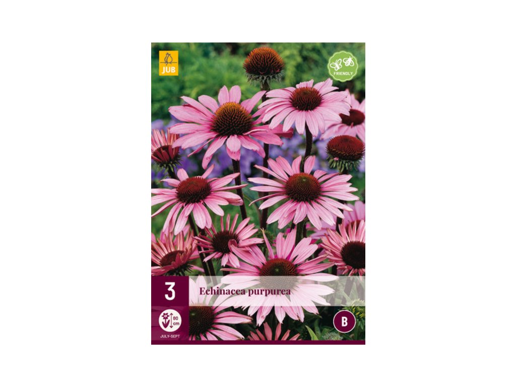 Echinacea purpurea, známa ako echinacea purpurová, je obľúbená dlho kvitnúca trvalka s výraznými kvetmi v ružovo-fialových odtieňoch. Typickým znakom je veľký vystúpený stred v oranžovo-hnedej farbe, ktorý dodáva kvetom charakteristický vzhľad. Doba kvitnutia je od júla do septembra. Výška rastliny je cca 70-100 cm, šírka rastliny cca 40-60 cm.