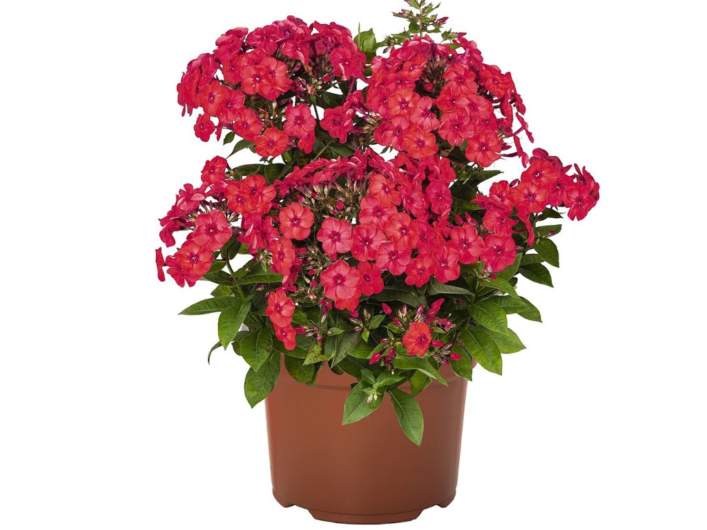 Phlox paniculata Flame 'Watermelon', známy ako flox metlinatý dosahuje výšku 50cm a šírku 40 cm. Tento kultivar sa vyznačuje silnou vôňou a červenými kvetmi. Je ideálny na pestovanie vo vonkajších kvetináčoch a bohato kvitne od druhej polovice leta až do jesene. Je mimoriadne odolný voči múčnatke, ak sa zabezpečí dostatočný odstup medzi jednotlivými rastlinami. Floxy všeobecne potrebujú jemný prúd vzduchu a dostatok vody priamo ku koreňom, pretože namáčanie listov podporuje šírenie múčnatky.