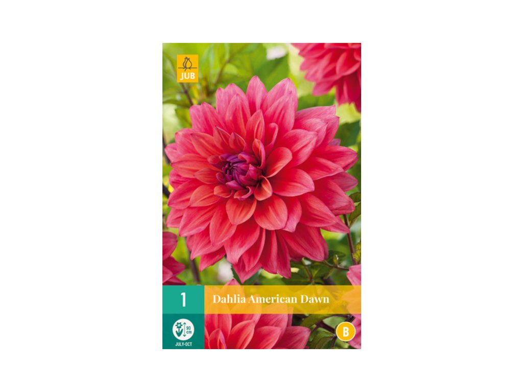 Georgína ‘American Dawn’ je nádherná dekoratívna dália s jemným a elegantným viacfarebným sfarbením. Veľké, bohato vrstvené kvety kombinujú ružové, lososové a krémové tóny, ktoré sa navzájom plynulo prelínajú. Každý kvet pôsobí harmonicky a zároveň originálne, vďaka čomu je táto odroda výnimočným prvkom letných záhonov. Doba kvitnutia je od júla do októbra. Výška rastliny je cca 90-120 cm, šírka rastliny je cca 40-60 cm.