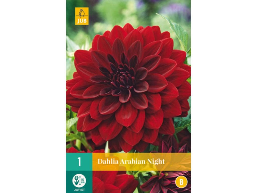 Georgína ‘Arabian Night’ patrí medzi najznámejšie a najobľúbenejšie tmavokvitnúce odrody georgín. Vytvára veľké, plné dekoratívne kvety v hlbokom tmavočervenom až bordovom odtieni, ktorý na slnku pôsobí takmer zamatovo. Táto intenzívna farba dodáva záhonu dramatický a elegantný vzhľad.Doba kvitnutia je od júla do októbra. Výška rastliny je cca 90-120 cm, šírka rastliny je cca 40-60 cm.