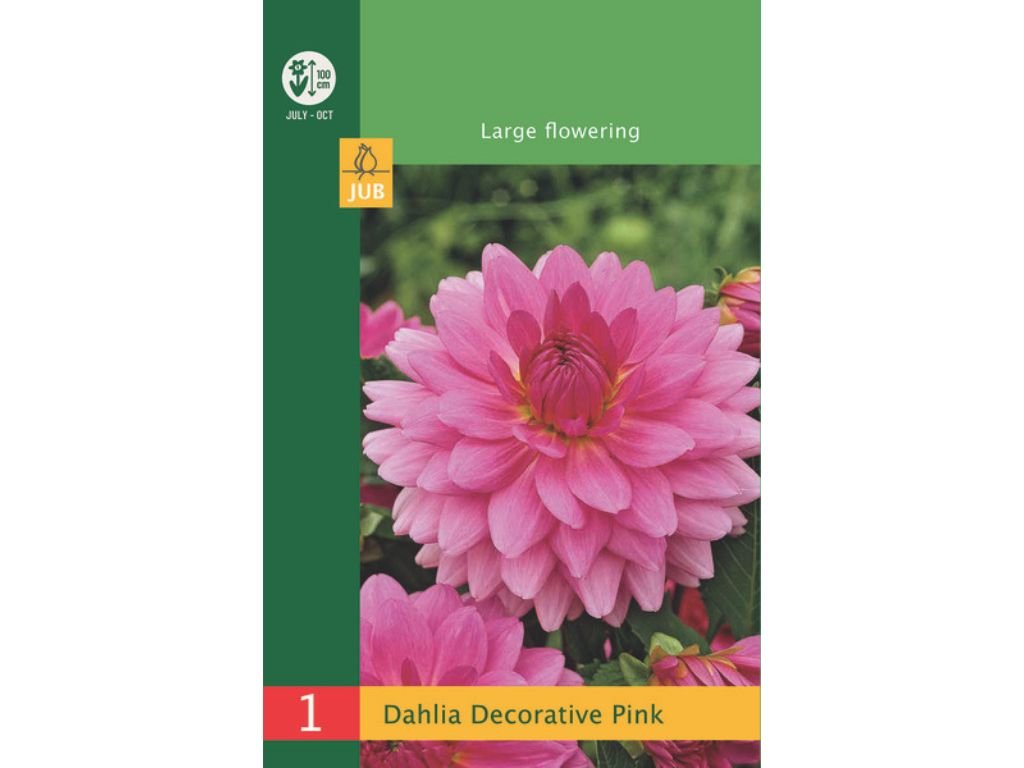 Georgína Decorative Pink je klasická veľkokvetá dekoratívna dália s bohato plnými kvetmi v čistej ružovej farbe. Kvety sú pravidelne vrstvené, lupeňe sú širšie a smerom do stredu sa postupne zhusťujú, takže kvet pôsobí plným, kompaktným dojmom. Ružový odtieň je jednotný a pôsobí sviežo, bez výrazného žíhania či okrajovania. Šírka rastliny je cca 50-60 cm.
