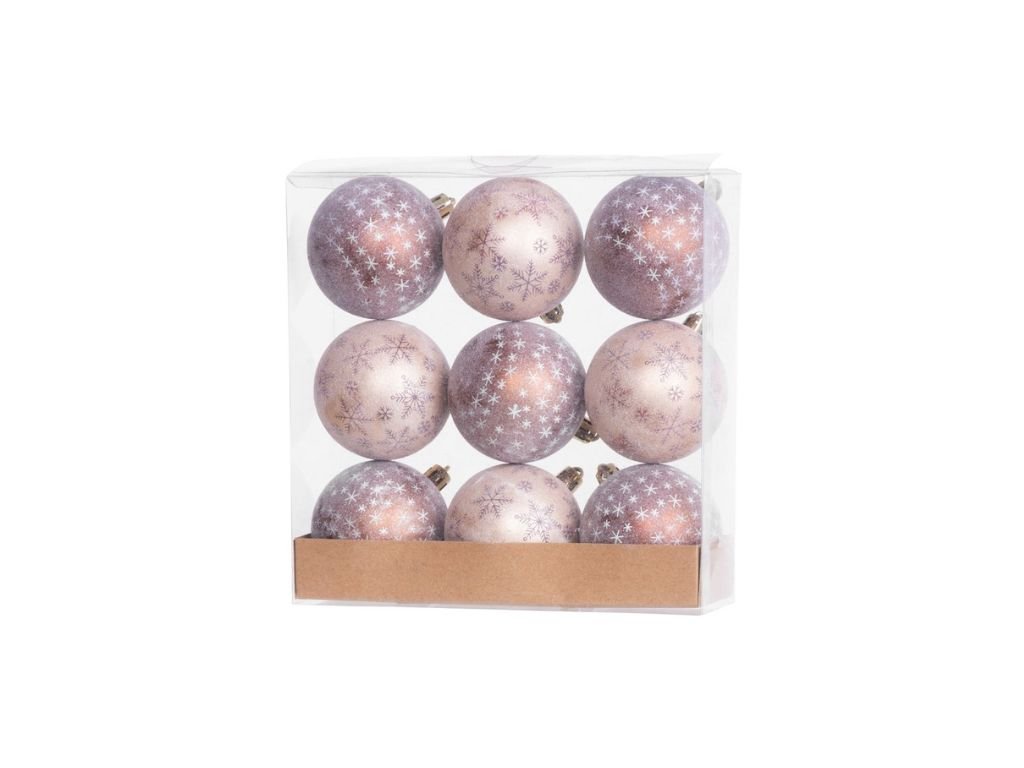 Súprava ozdôb na stromček slúži na slávnostné ozdobenie vianočného stromčeka. Pozostáva z 9 ks vianočných gúľ s priemerom 6 cm. Farba gúľ je bronzová, matná s dekoráciou. Sú vyrobené z plastu.