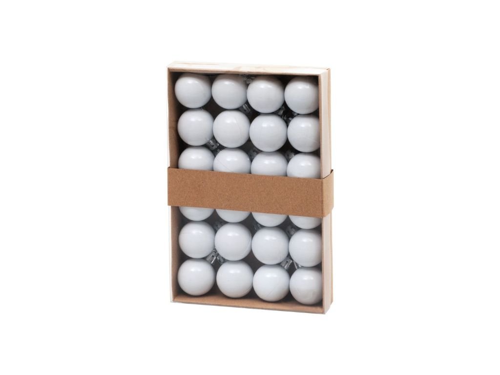 Súprava ozdôb na stromček slúži na slávnostné ozdobenie vianočného stromčeka. Pozostáva z 24 ks guľatých vianočných ozdôb. Ozdoby majú bielu farbu a sú vyrobené z plastu.