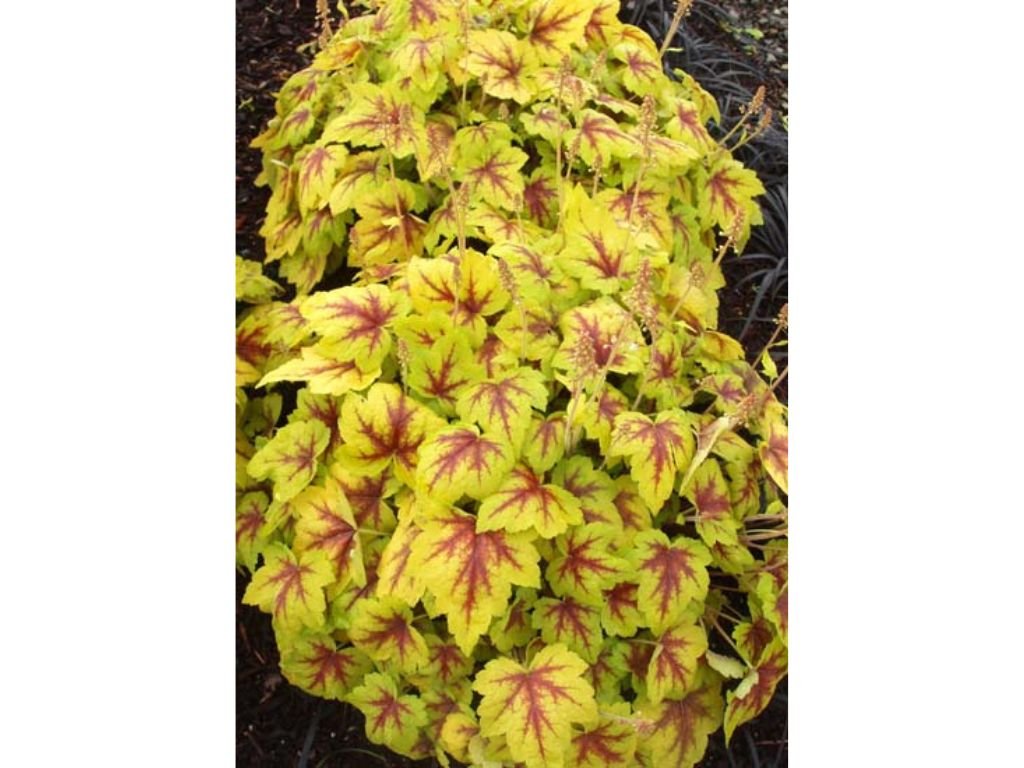 Ide o hybrid medzi heucherou a tiarella. Má žiarivo žlté listy s červeným stredom, ktoré sa menia na zeleno-žlté počas sezóny. Kvitne bielymi kvetmi a preferuje polotieň až tieň