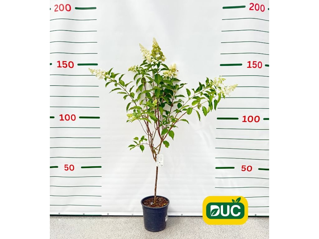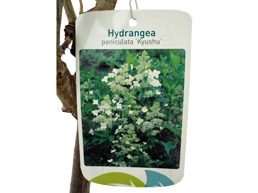 Hortenzia metlinatá ‘Kyushu’ je elegantná, bohato kvitnúca opadavá drevina, vyšľachtená v Japonsku, ktorá je na kmienku tvarovaná do malej korunky. Vyznačuje sa tuhými výhonkami nesúcimi jemné, kužeľovité súkvetia zložené z drobných, čisto bielych kvetov. Kvitne bohato a dlhodobo – od júla až do októbra. Kvety sú sterilné a nehnednú, vďaka čomu si zachovávajú dekoratívnosť po celé týždne. Tmavozelené listy s lesklým povrchom zvýrazňujú jas kvetov. V dospelosti vytvára pravidelnú, oválnu až mierne klenutú korunu. Kultivar je veľmi mrazuvzdorný a nenáročný na pestovanie, čo z neho robí ideálny výber do menších záhrad, predzáhradiek aj ako výrazný solitér v črepníku.