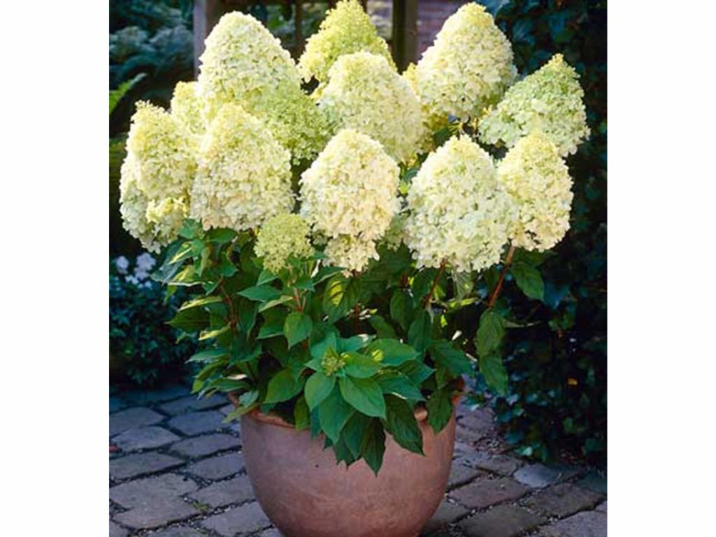 Hydrangea paniculata 'Limelight' je výrazná metlinatá hortenzia, známa svojimi veľkými kužeľovitými kvetmi, ktoré v úvode kvitnutia hrajú sviežimi limetkovozelenými odtieňmi. Ako sezóna pokračuje, kvety prechádzajú do krémovobielej a napokon ružovkastej farby, čo rastline dodáva mimoriadne dekoratívny vzhľad počas celej druhej polovice leta až do jesene.