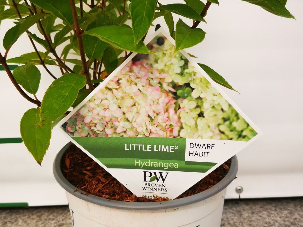 Hortenzia metlinatá Little Lime (Hydrangea paniculata 'Jane') je kompaktný, opadavý ker s bohato kvitnúcimi kužeľovitými súkvetiami. Na prelome leta vykvitá sviežou limetkovo‑zelenou farbou, neskôr bielie a na jeseň prechádzajú do jemne ružovej až bordovej. Má vzpriamený rast, tmavozelené oválne listy a pevné stonky, ktoré udržiavajú ťažké kvety vzpriamené. Vďaka kompaktnému tvaru je vhodná do menších záhrad, črepníkov či ako nízka živá stena. Kvety sú ideálne na rez alebo sušenie a dlho si zachovávajú farebnosť a tvar. Odolná proti mrazu a bežne nenáročná na starostlivosť.