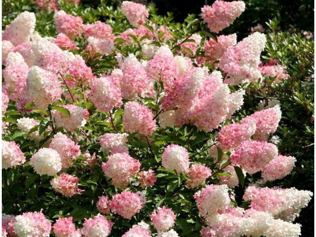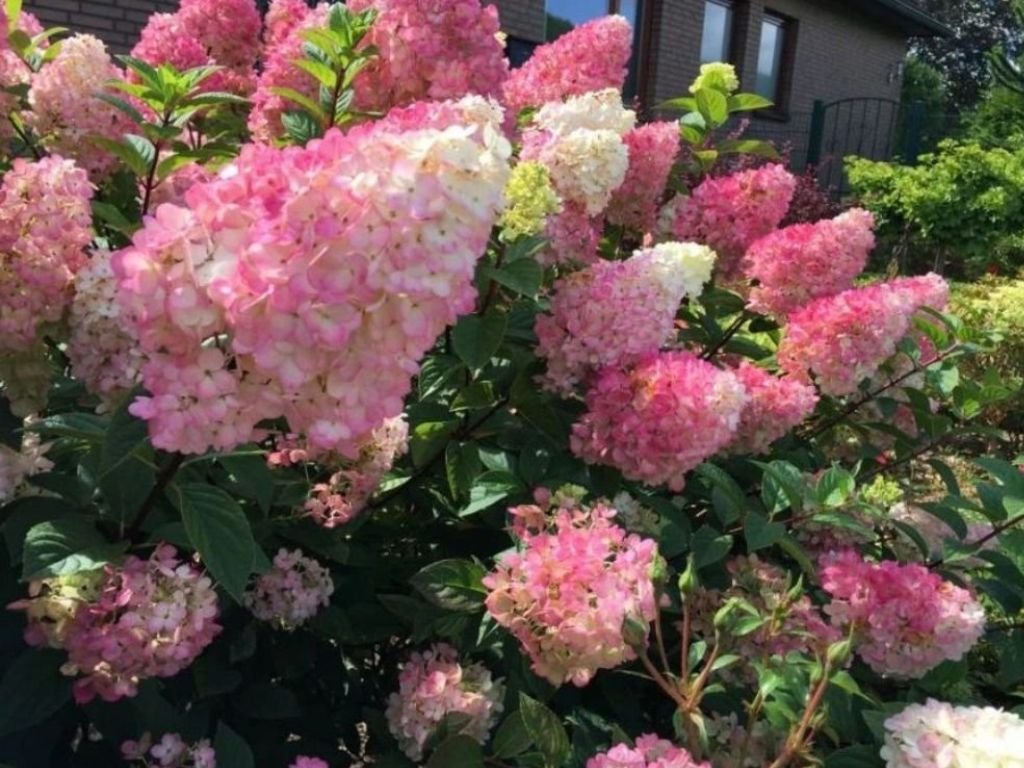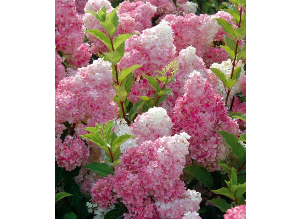 Hydrangea paniculata 'Vanille Fraise' je výnimočná metlinatá hortenzia, ktorá si získala popularitu vďaka svojim bohatým súkvetiam a neobyčajnej hre farieb. Obrovské kužeľovité kvety na pevných, vzpriamených výhonoch sa najskôr objavujú ako krémovobiele, potom postupne prechádzajú do jemnej ružovej a v neskorom lete až do sýto malinovej. Tento farebný prechod môže prebiehať aj súčasne, čo vytvára pôsobivý trojfarebný efekt – odtiaľ názov „Vanilka s jahodami“.