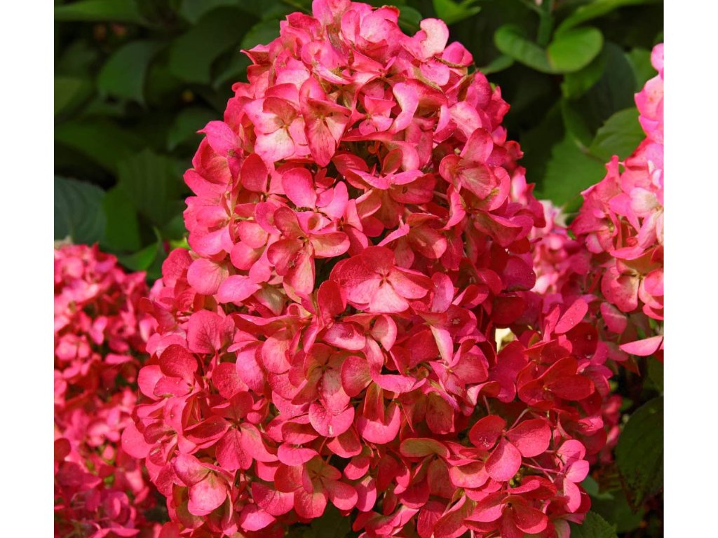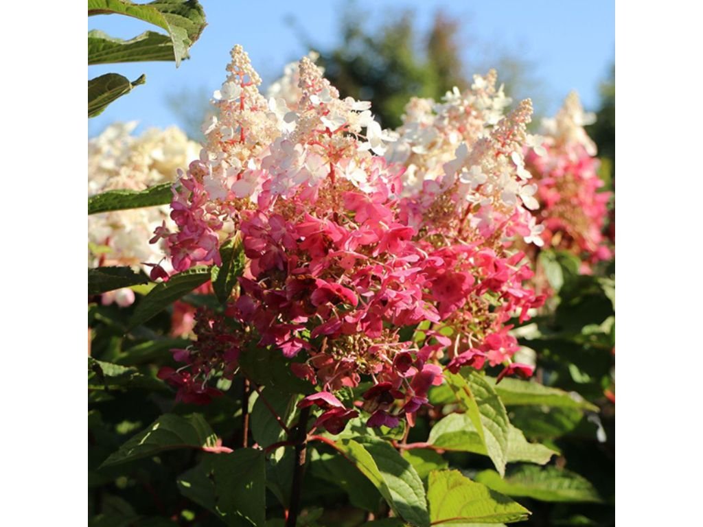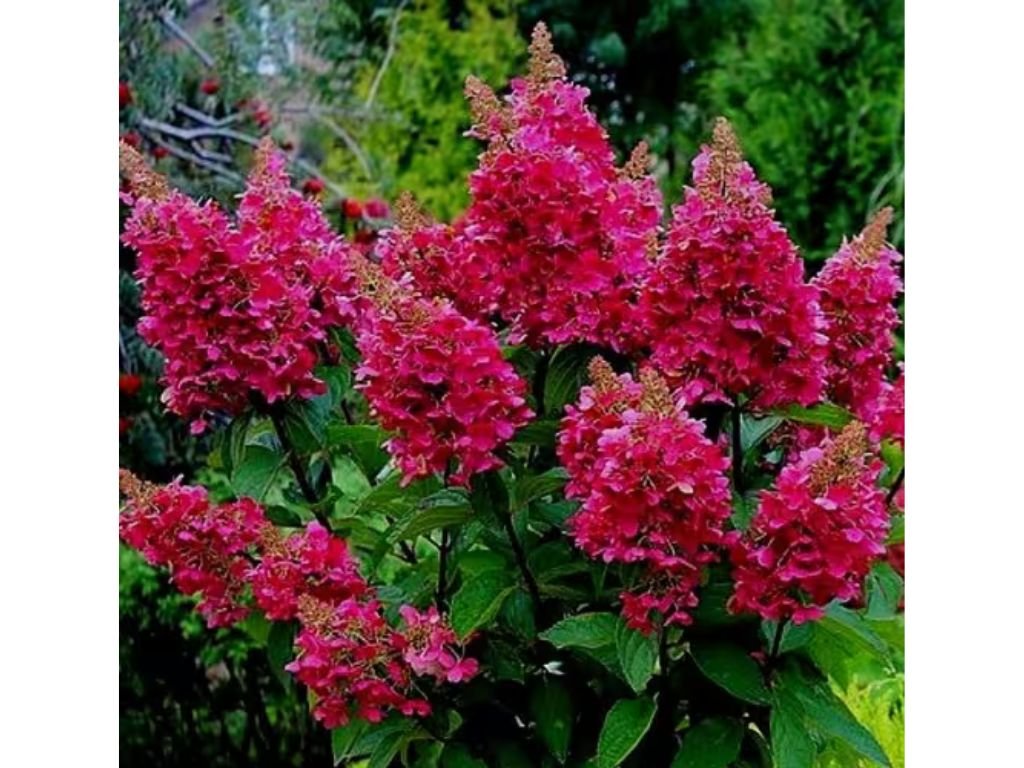 Hortenzia metlinatá Wims Red (Hydrangea paniculata ‘Wim’s Red’) je mohutný opadavý ker s bohatými kužeľovitými súkvetiami dlhými až 30 cm. Kvety začínajú snehovo biele, v letných mesiacoch jasujú do ružova a na jeseň získavajú sýto červený až vínový odtieň, čo vytvára dramatický farebný prechod. Listy sú tmavozelené a lesklé, stonky majú zaujímavý červený nádych. Rastlina kvitne na mladých výhonkoch, vydrží dlhodobo kvitnúť a je obľúbená v rezaných či sušených kvetinových aranžmánoch.