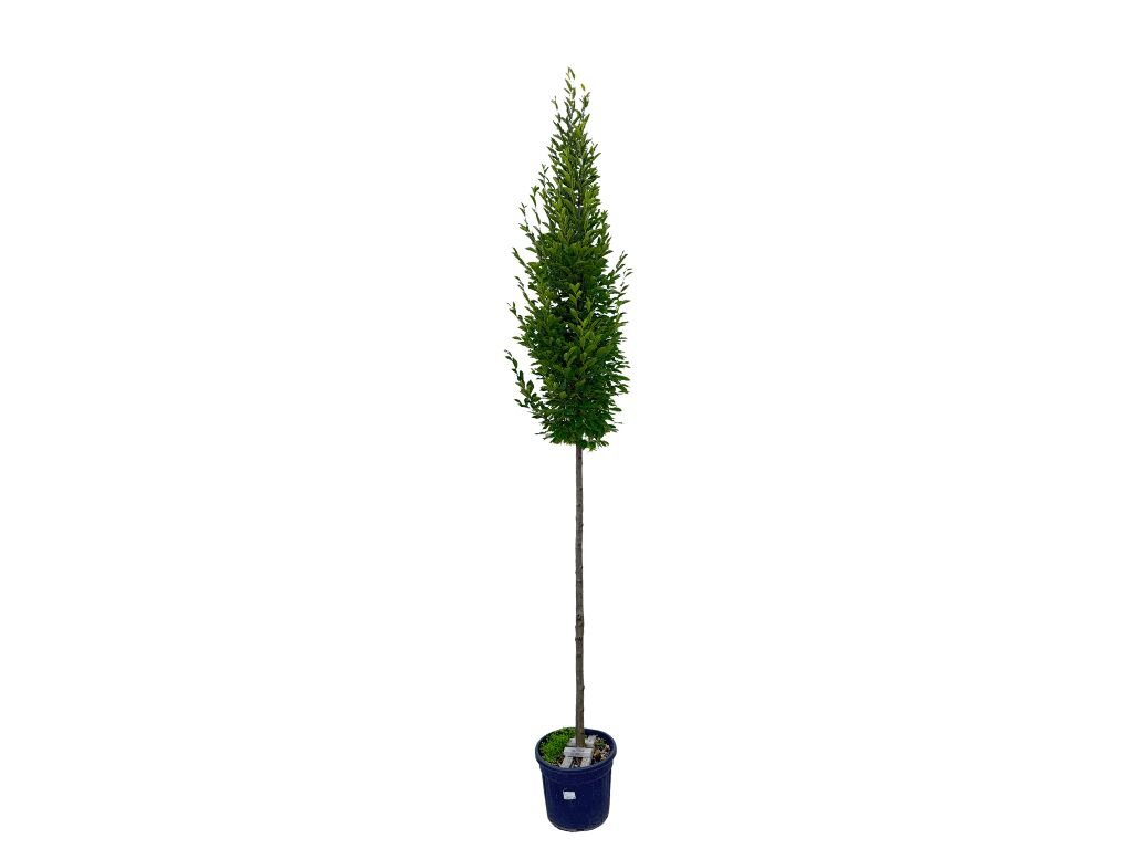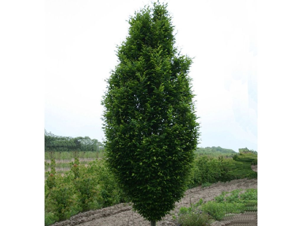 Carpinus betulus 'Pyramidalis' je elegantný a vzpriamený listnatý strom, ktorý je ideálny pre formálne záhrady, alejové výsadby a úzke mestské priestory. Tento strom sa vyznačuje kompaktným, pyramídovým tvarom a hustým olistením, ktoré je na jar a v lete tmavozelené a na jeseň sa mení na nádherné odtiene žltej a oranžovej.