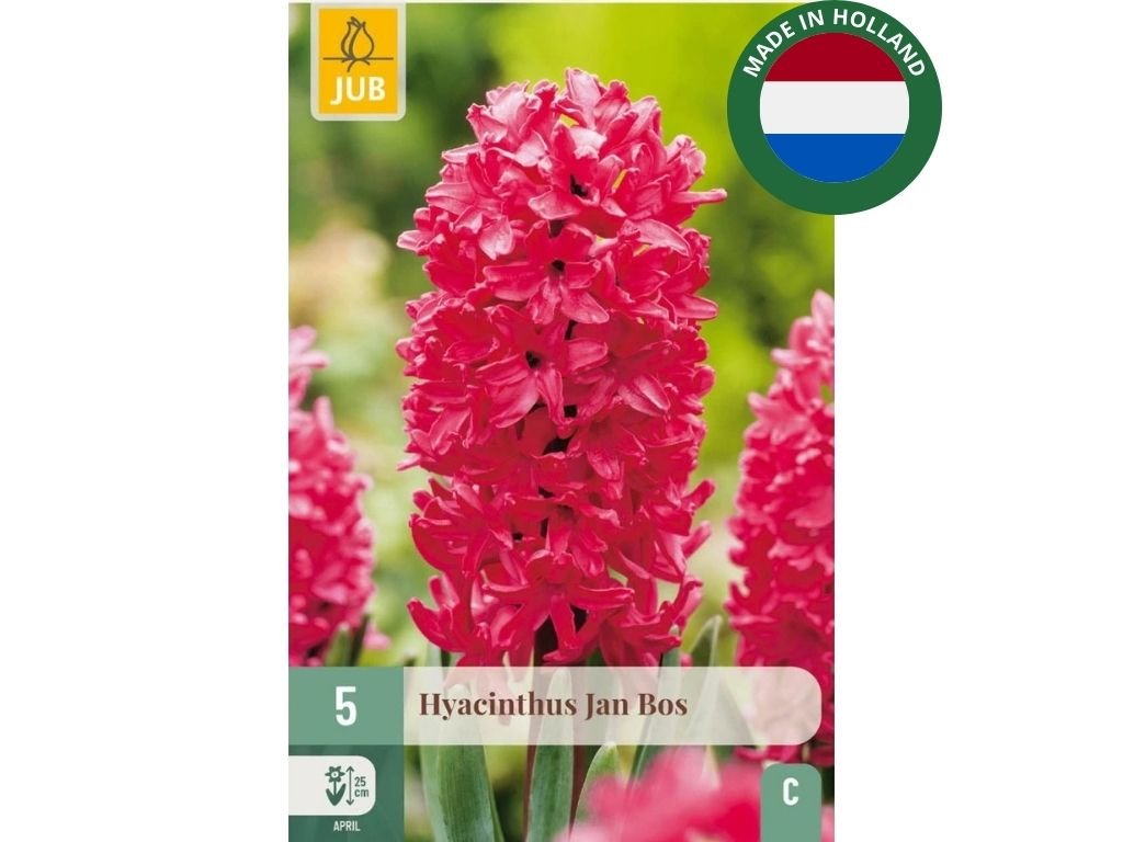 Hyacint Jan Bos je výrazný hyacint s červenoružovými kvetmi a sladkou vôňou. Ideálny na výsadbu do záhonov, kvetináčov alebo na zimné rýchlenie.