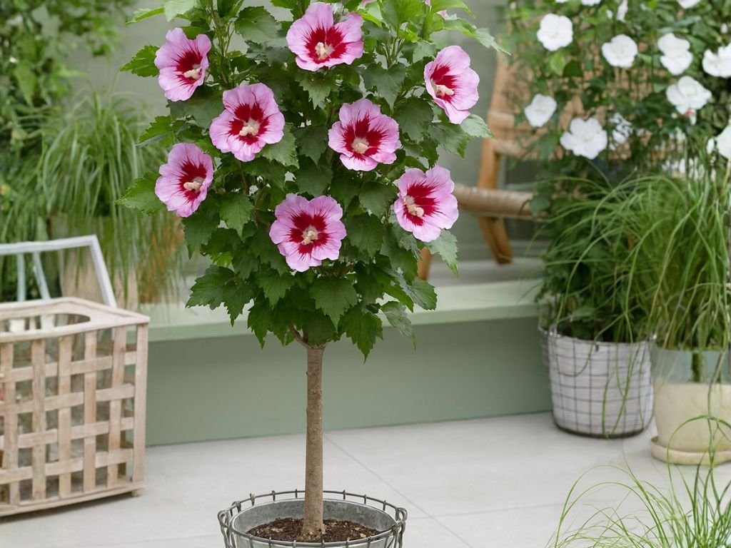 Ibištek sýrsky Flower tower Purple je pôvabný okrasný strom na kmienku, ktorý vyniká svojimi veľkými kvetmi, ktoré sú sýtofialové až purpurovo-fialové s tmavším, vínovo-červeným stredom (okom).Tento kultivar má jemný vzhľad s kvetmi, ktoré pripomínajú hodvábne stuhy, a vytvára elegantný vizuálny dojem, ktorý sa hodí do rôznych záhradných kompozícií. Jeho kvety sú zdobené tmavším stredom, čo dodáva celej rastline atraktívny kontrast. Na jar a v lete vytvára bohatú kvetenstvo, ktoré kvitne od júna až septembra. Tmavozelené listy poskytujú krásny rámec pre kvety, pričom tento strom je ideálny do záhrad, kde ponúka nielen krásu, ale aj tieň v teplých mesiacoch. Je to opadavý strom s kompaktnou korunkou, ktorý je odolný voči mrazom a vyžaduje minimálnu starostlivosť.
