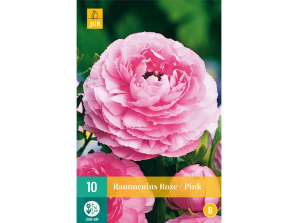 Iskerník ázijský (Ranunculus) Roze/Pink je výrazná letná cibuľovina (hľuznatá rastlina) s veľkými, bohato plnými kvetmi, ktoré pripomínajú malé ruže alebo pivónie. Kvety majú ružové odtiene – od jemnej púdrovej po sýtejšiu ružovú – a rozkvitajú postupne na pevných stonkách, takže rastlina kvitne dlhšie. Listy sú sviežo zelené, jemne delené a tvoria kompaktný trs. Iskerník je výborný do záhonov aj na rez (vo váze vydrží dlho).