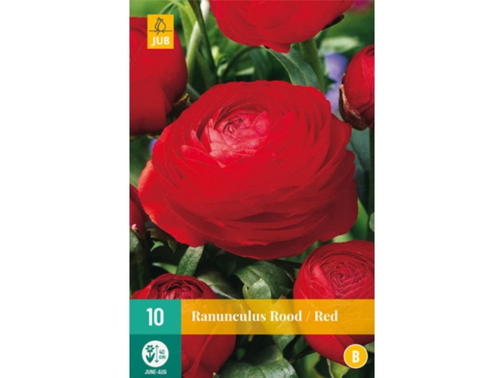 Iskerník ázijský (Ranunculus Rood / Red) je elegantná letná hľuznatá rastlina s nádhernými, bohato plnými kvetmi v sýtej červenej farbe. Kvety sú husté, vrstvené a svojim vzhľadom pripomínajú malé ruže alebo pivónie. Vďaka intenzívnemu červenému odtieňu pôsobí veľmi výrazne a luxusne v záhonoch aj v kvetinových aranžmánoch.