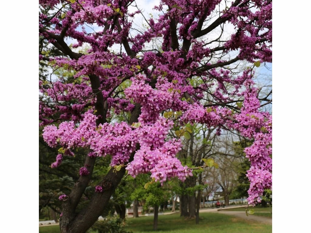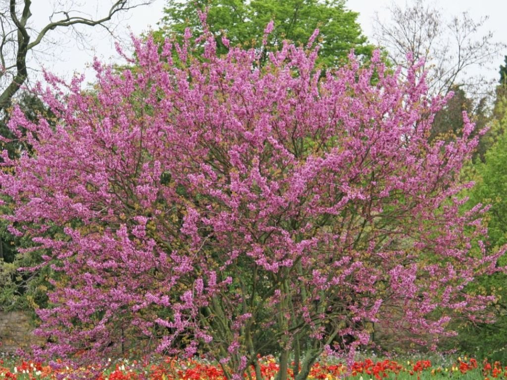 Opadavý okrasný stromček s výnimočnými ružovo-fialovými kvetmi. Vyniká aj okrúhlymi listami a kompaktnou korunou. Vhodný je ako solitér na slnečné miesto, najmä v teplejších oblastiach.