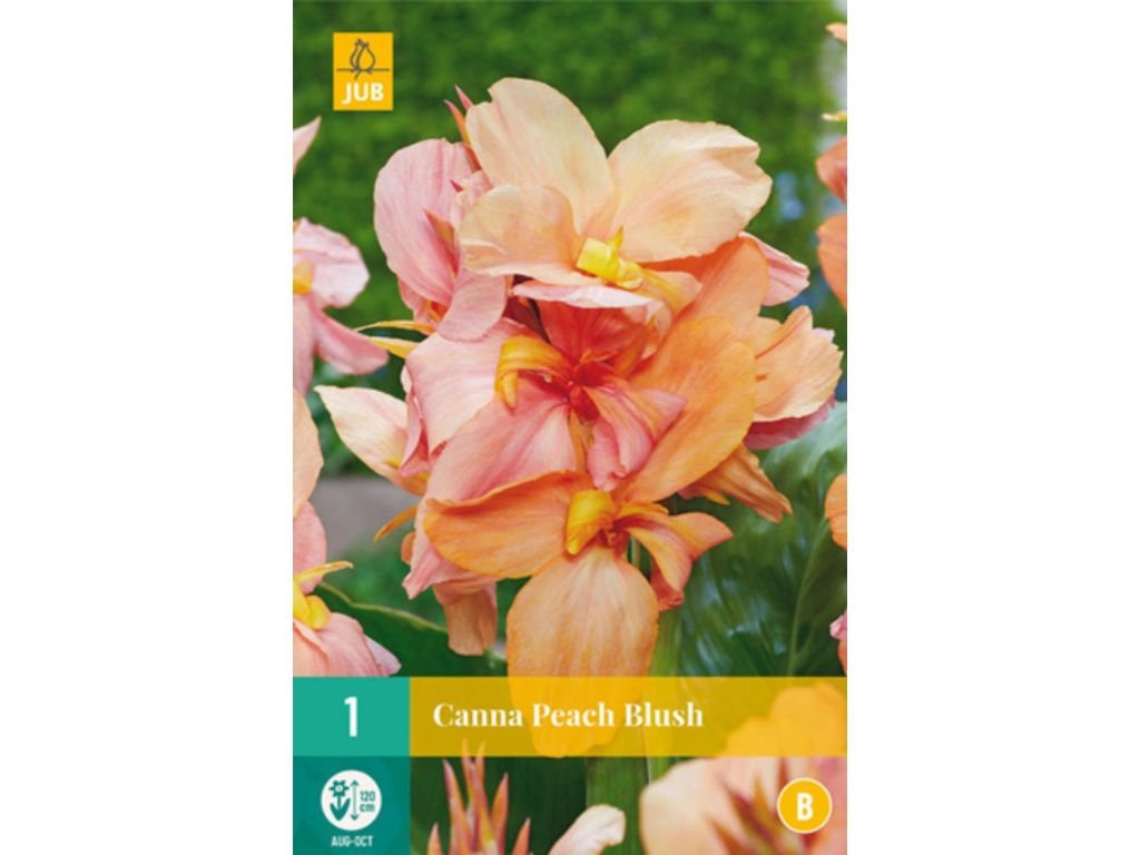 Kana (Canna) ‘Peach Blush’ je elegantná exotická hľuznatá rastlina s jemne pôsobiacimi kvetmi v broskyňových až marhuľovo-ružových odtieňoch. Kvety sú veľké, mierne nepravidelné, s teplým žltým nádychom v strede, čo vytvára veľmi romantický a mäkký farebný efekt.