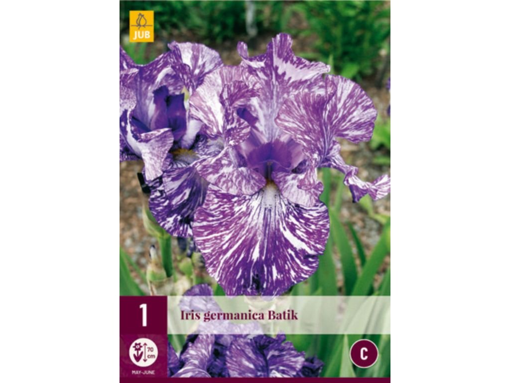 Kosatec nemecký ‘Batik’ je výrazná trvalka s veľkými, bohato zvlnenými kvetmi v kontrastnej kombinácii fialovej a bielej farby. Typickým znakom odrody je nepravidelný „batikovaný“ vzor na okvetných lístkoch, ktorý robí každý kvet vizuálne jedinečným. Kvety sa objavujú na pevných, vzpriamených stonkách a kvitnú v období máj – jún.
