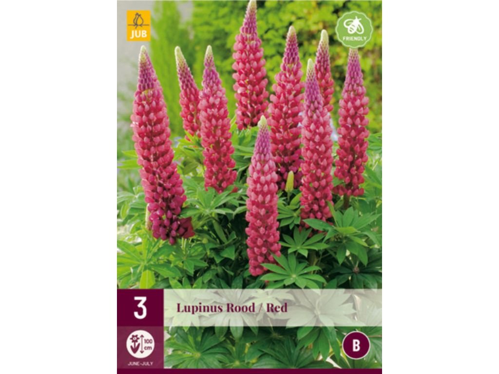 Lupina (Lupinus) ‘Red’ je výrazná, dominantná trvalka s vysokými, pevnými klasovitými súkvetiami v sýtych ružovo-červených až malinovo červených odtieňoch. Kvety sú husto usporiadané pozdĺž vzpriamených stoniek a rozkvitajú postupne, čím vytvárajú bohatý a dlhodobo atraktívny efekt.