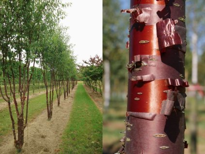 Opadavý viackmeňový strom alebo veľký ker s lesklou, mahagónovo sfarbenou kôrou. Kvitne v apríli bielymi až svetloružovými kvetmi. Preferuje...