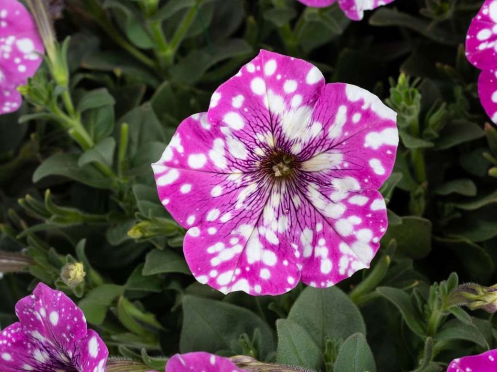 Petúnia Splash Dance Fuchsia Flamengo je nádherný kultivar, s výraznými fialovými kvetmi, ktoré sú ozdobené bielymi bodkami. Bude nádhernou ozdobou vašich balkónov. Táto rastlina má kompaktný, mierne previsnutý rast a preferuje slnečné stanovište. Substrát udržujte mierne vlhký a pravidelne rastliny prihnojujte, aby sa udržali zdravé a plné vitálnosti.