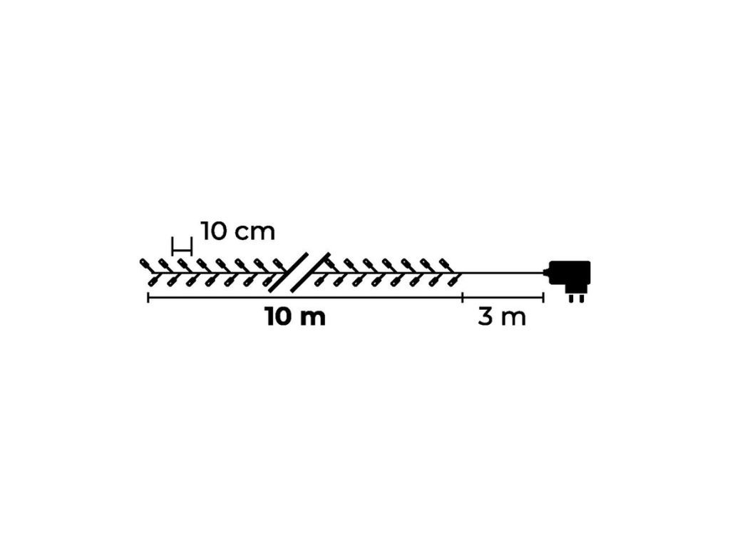 Reťaz, 100 LED teplá biela, 8 funkcií, 230 V, 50 Hz, s adaptérom, exteriér, 10 m