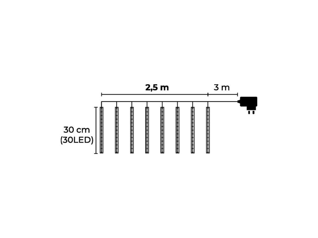 Reťaz, 240 LED studená biela, 8 cencúľov, 230 V, 50 Hz, IP44, exteriér, L-2,50 x 0,30 m