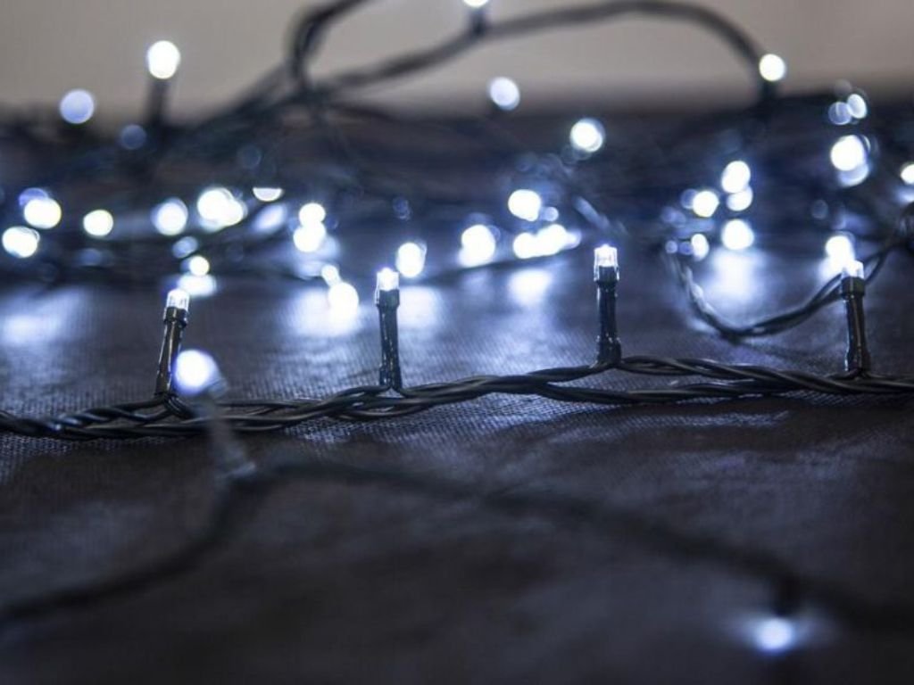 Reťaz, 560 LED studená biela, 8 funkcií, 230 V, 50 Hz, exteriér, napájací kábel 3 m, 14 m