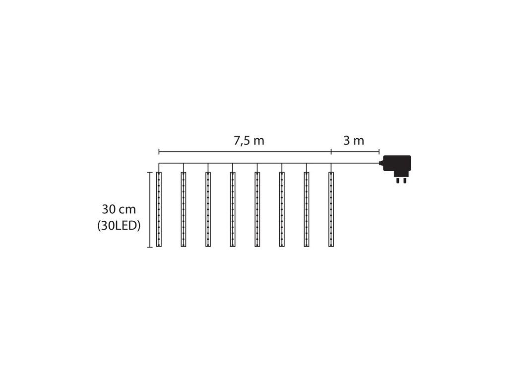 Reťaz, 720 LED studená biela, 24 cencúľov, 230 V, 50 Hz, IP44, exteriér, 7,50 x 0,30 m