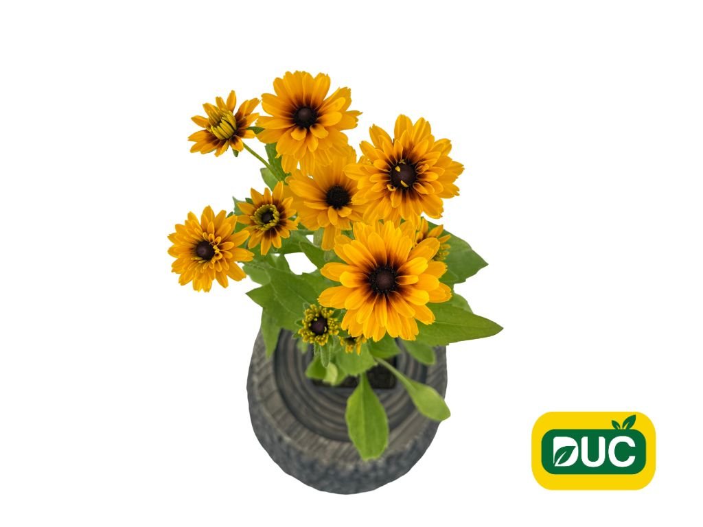 Rudbeckia 'Littlebeckia Ballerina' je kompaktná trvalka s oranžovožltými kvetmi a tmavými stredmi, ktoré rozjasnia každú záhradu. Je ako stvorená pre menšie záhony a do nádob. 'Littlebeckia Ballerina' kvitne hojne od leta až do prvých mrazov a jej kvety priťahujú včely a motýle, čím podporujú biodiverzitu v záhrade. Je odolná voči teplu a suchu a preferuje slnečné stanovište s dobre priepustnou pôdou.