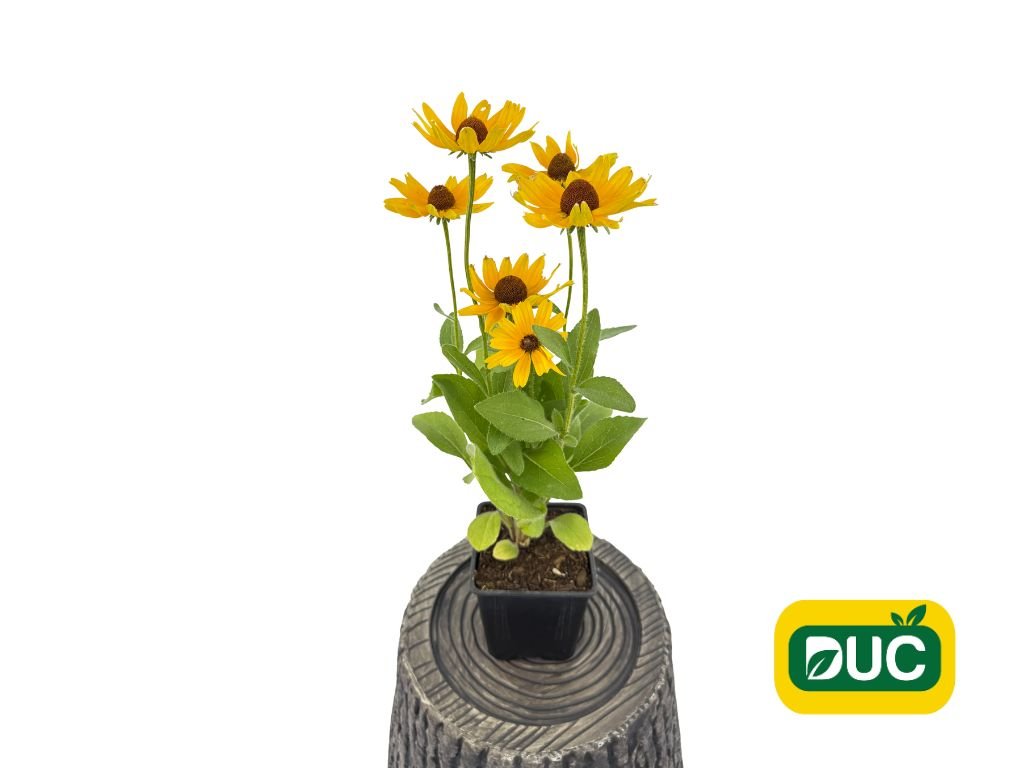 Rudbeckia 'SmileyZ Cheerful' je kompaktná trvalka známa svojimi výraznými kvetmi, ktoré kombinujú tmavé/tmavočervené stredy s jasne žltými okrajmi okvetných lístkov. Táto odroda dosahuje výšku približne 30 – 40 cm a šírku okolo 30 cm, čo z nej robí ideálnu voľbu pre záhony, okraje chodníkov či pestovanie v nádobách. Kvitne od júna do októbra, pričom jej kvety sú atraktívne pre opeľovače, ako sú včely a motýle.