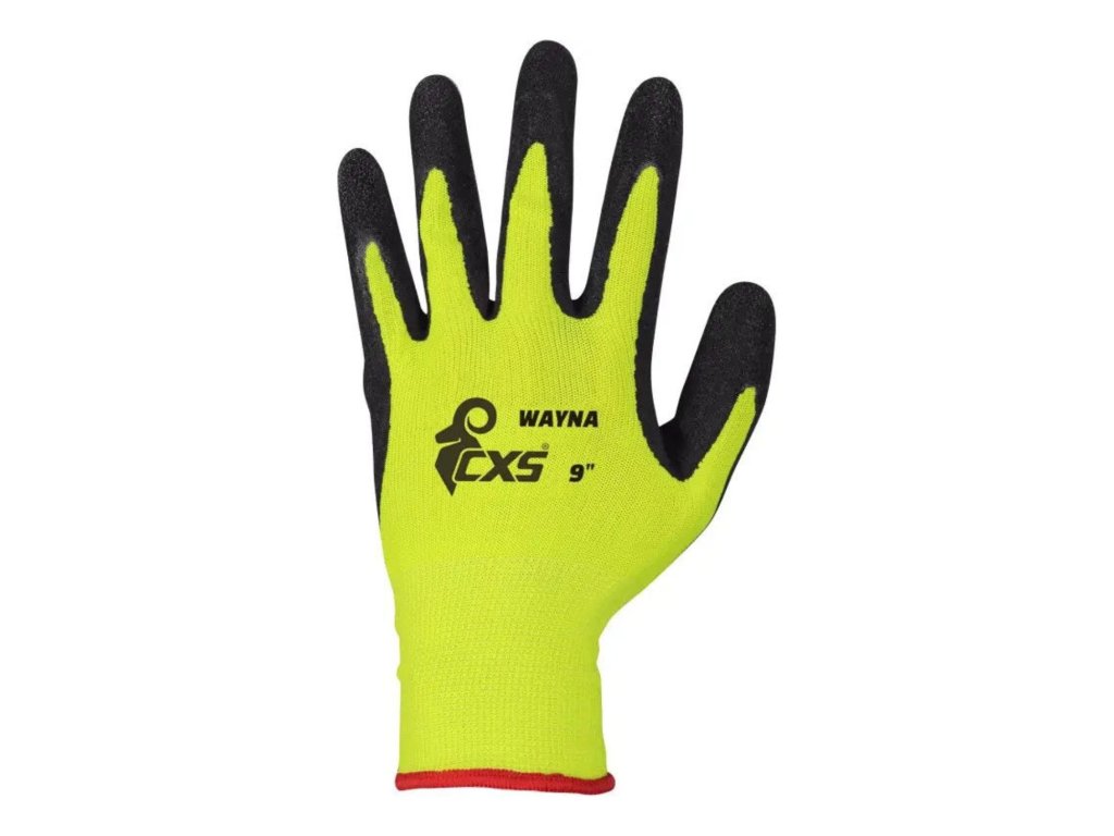 - Bezšvové rukavice z mäkčeného úpletu, dlaň a prsty potreté latexom s pieskovou úpravou pre lepší úchop, pružná manžeta.