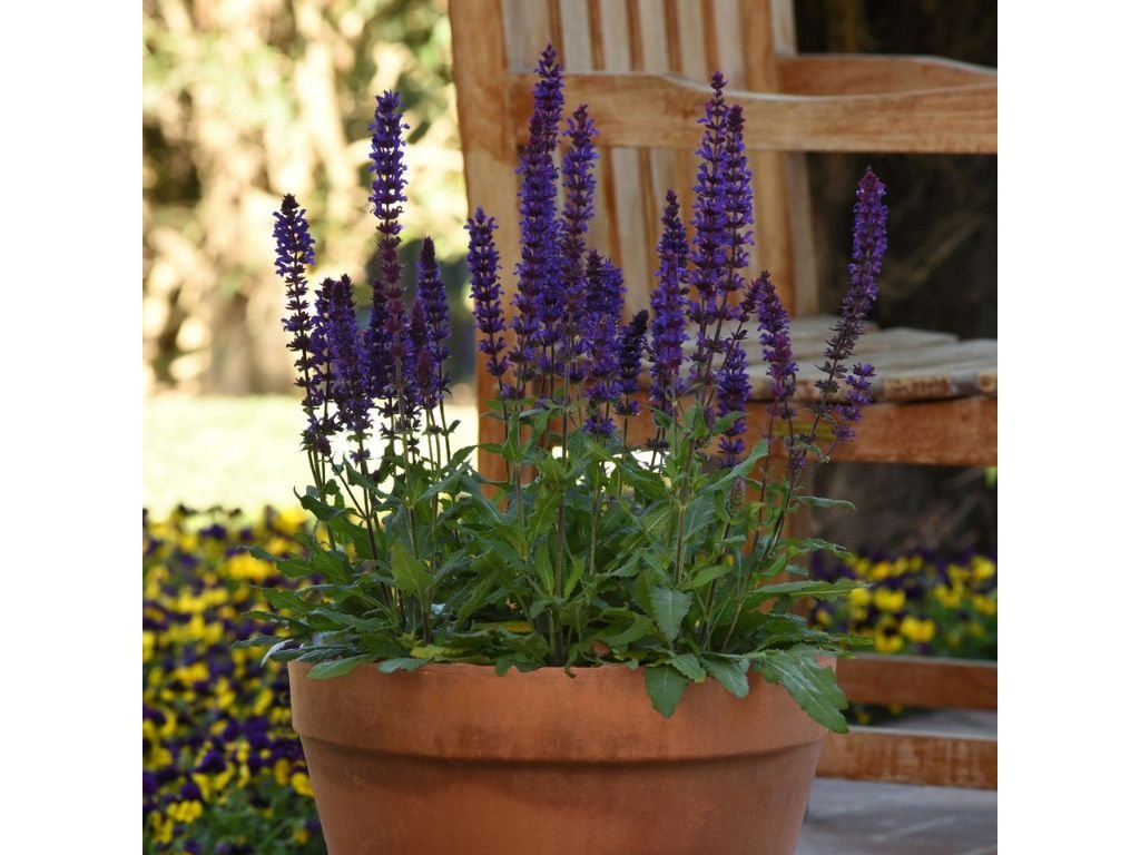 Šalvia hájna 'Salvatore Blue' (Salvia nemorosa 'Salvatore Blue') je kompaktná trvalka známa svojimi intenzívne modrými, fialovými kvetmi usporiadanými v hustých klasoch. Rastlina vytvára husté trsy aromatických, tmavozelených listov, ktoré kontrastujú s jej výraznými kvetmi. Kvitne od mája do septembra, pričom dosahuje výšku približne 25-30 cm a šírku okolo 20-25 cm. Je obľúbená medzi opeľovačmi, ako sú včely a motýle, a jej kvety sú vhodné aj na rezanie.