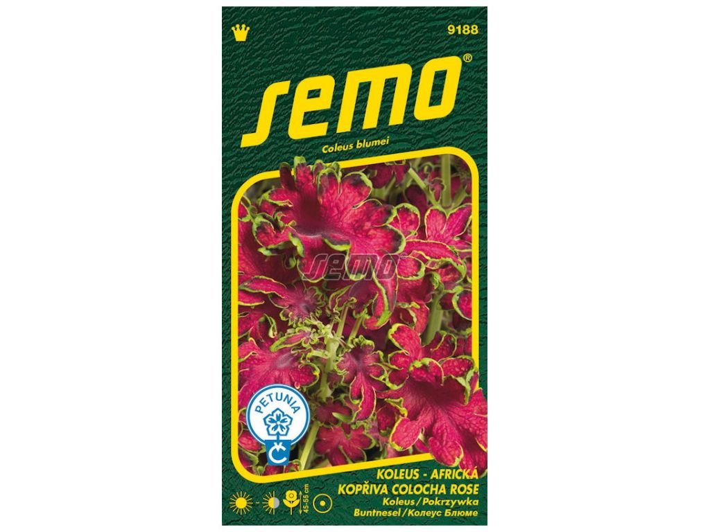 Koleus (Africká žihľava) Colocha Rose je odroda stredného (45 až 55 cm) a rozvetveného vzrastu, ktorá neskôr nakvitá. Na prvý pohľad nás tento kolesá upúta neobvyklým až exotickým tvarom aj sfarbením listov. Listy tejto africkej žihľavy sú ružové so zeleným okrajom. Koleus Colocha Rose je možné pestovať v nádobách ako solitér alebo v zmesiach, ale aj v záhonových výsadbách. Rastliny je možné pestovať v tieni aj na slnku, dobre znáša aj vysoké teploty. V suchom období je potrebné zaistiť dostatočnú závlahu. Presušenie urýchľuje začiatok nežiaduceho kvitnutia.