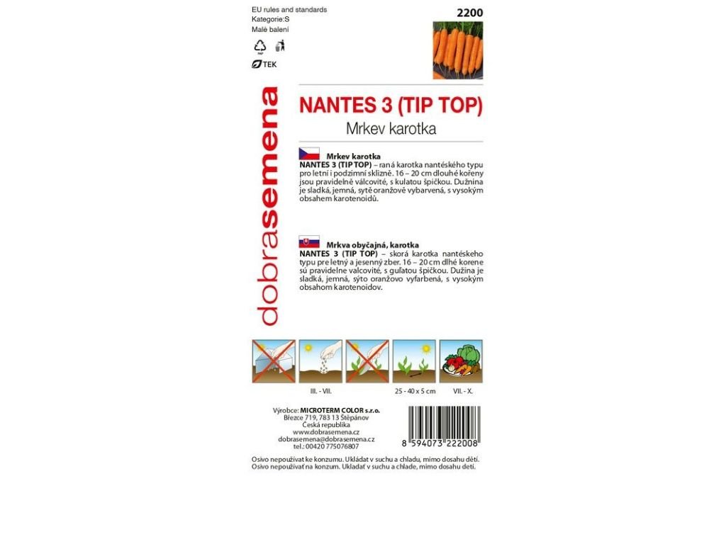 Semená Mrkva poloskorá Nantes 3 Tip-Top 3g - Dobrá Semena