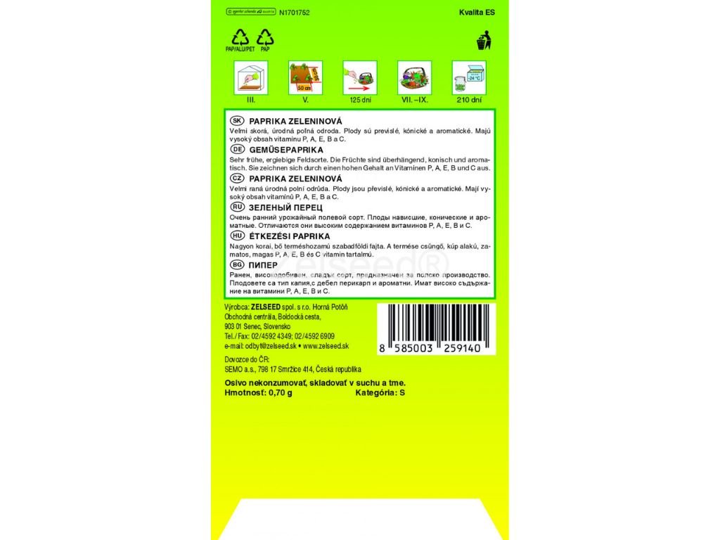 Semená Paprika zeleninová kápia Slovakia 0,7g - Zelseed