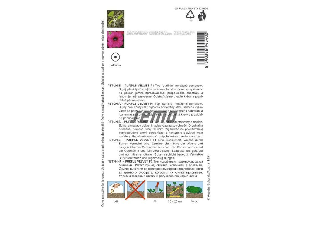 Obľúbená letnička vhodná do okenných truhlíkov aj na záhonové výsadby. Vyžaduje slnečné, teplé stanovisko a výživnú, humóznu pôdu. Neznáša veterné miesta. Semená vysievame na povrch jemne pripraveného prepareného substrátu a len veľmi slabo zasypeme. Po troch týždňoch rastliny prepikírujeme a následne rozsadíme do črepníkov. Počas vegetácie odstraňujeme zvädnuté kvety a pravidelne prihnojujeme. Má bujný, previslý rast, výborný zdravotný stav a purpurové kvety. Osivo je peletované.