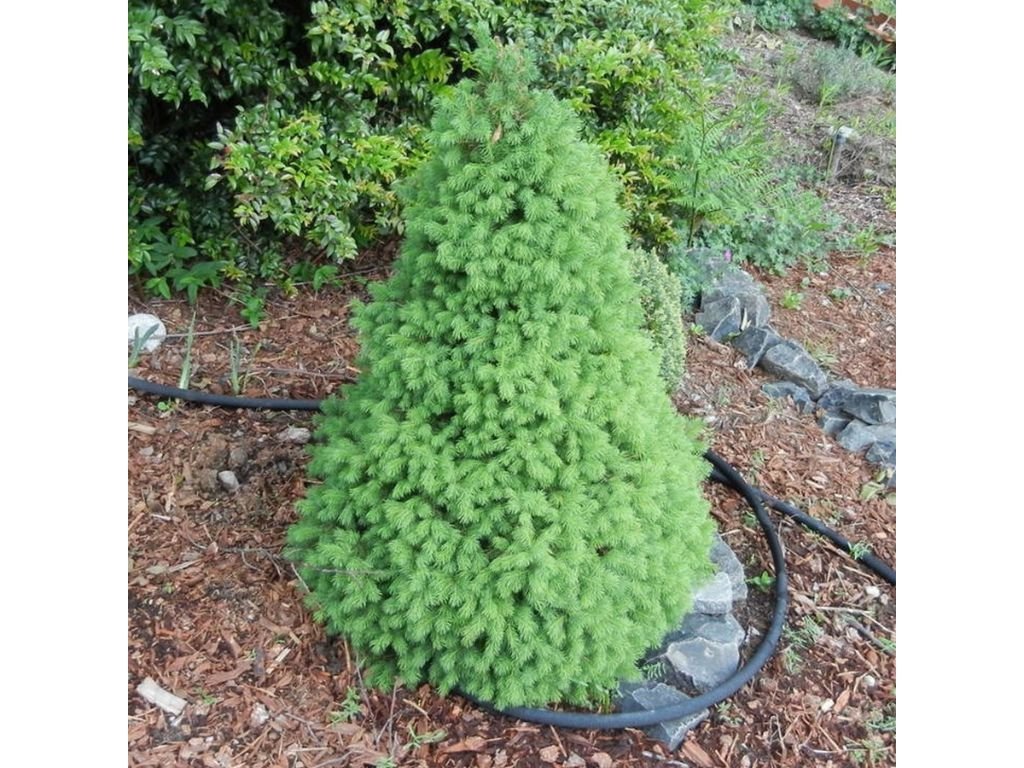 Smrek biely CONICA je obľúbený trpasličí smrek s dokonalým kužeľovitým tvarom a jemným, svetlozeleným ihličím. Je ideálnou voľbou pre menšie záhrady, skalky alebo formálne výsadby, kde svojou pravidelnou štruktúrou a kompaktným rastom vytvára krásny akcent. Jeho husté ihličie si udržiava celoročne zelenú farbu, čo dodáva záhrade štruktúru aj v zimných mesiacoch.