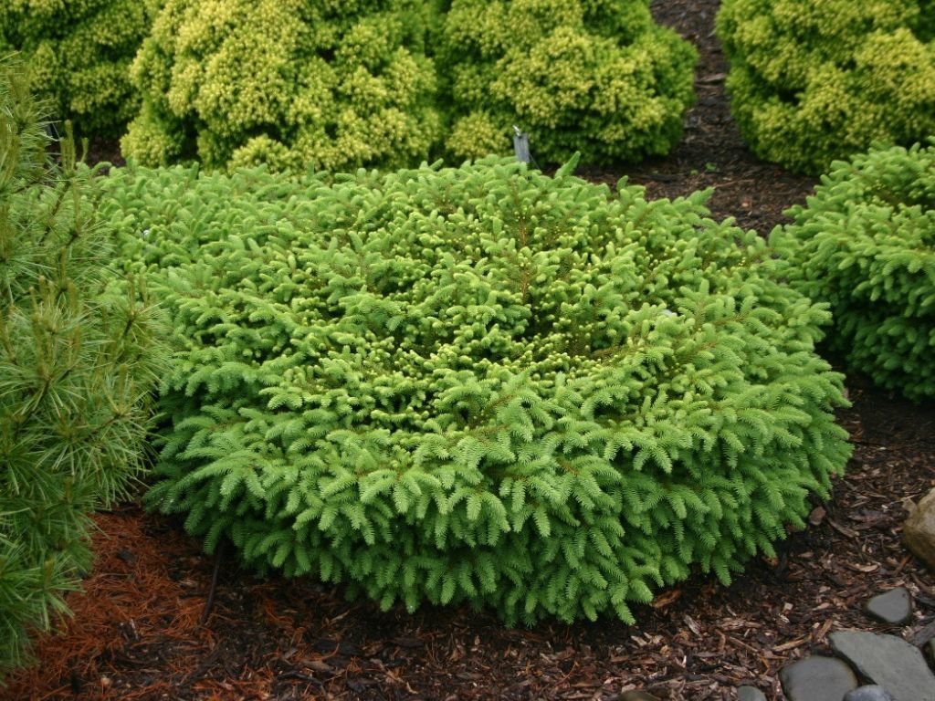 Smrek obyčajný NIDIFORMIS je kompaktný, stálozelený krík s hustým tmavozeleným ihličím a rozložitým habitusom, ktorý pripomína hniezdo. Jeho nové jarné výhonky sú svetlozelené, čo dodáva rastline svieži kontrast. 'Nidiformis' je ideálnym solitérom alebo doplnkom v skalkách, menších záhradách a nádobách, kde jeho nízky profil krásne dopĺňa farebné kvetinové alebo trávnaté výsadby.