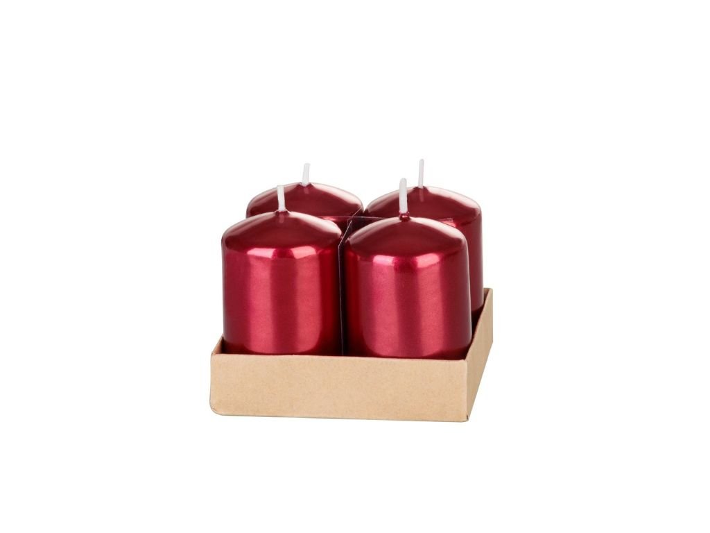 Sviečka, 4x6 cm, valcová, bal. 4 ks, červená, metalický efekt, adventná