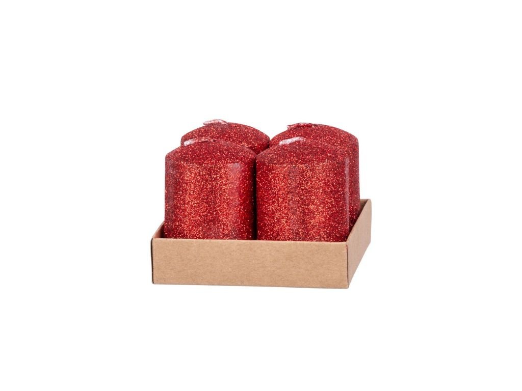 Sviečka MagicHome Vianoce, 4x6 cm, valcová, bal. 4 ks, červená, s glitrami, adventná