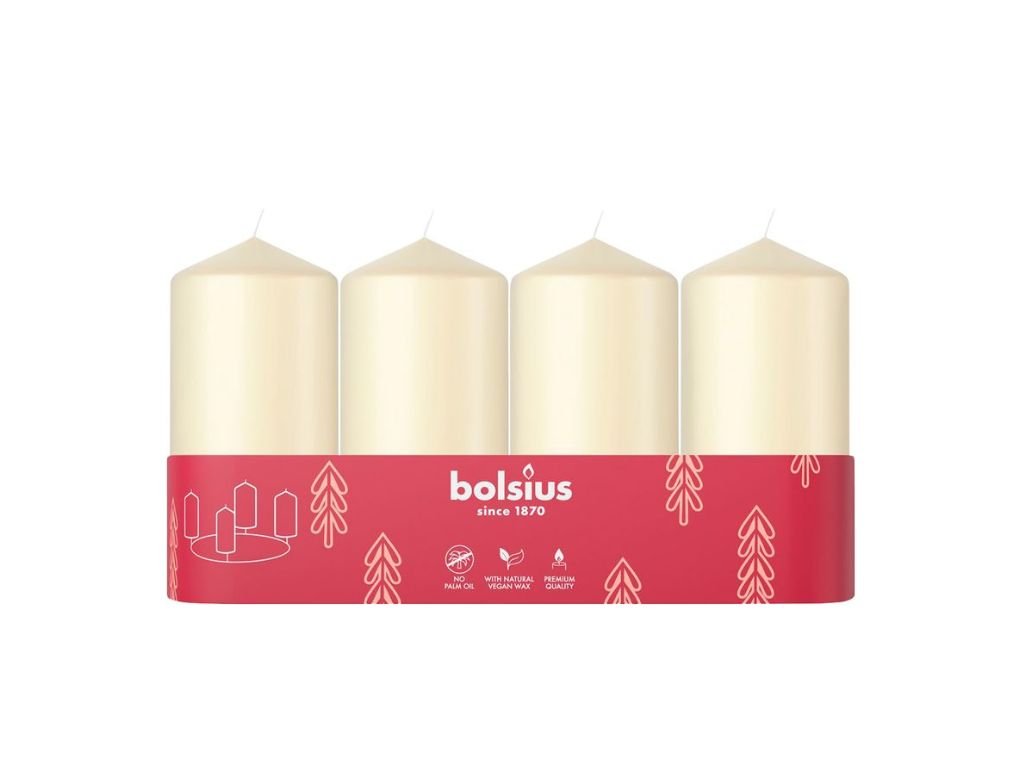 Sviečky Bolsius Pillar Advent, Vianoce, krémové, 48 - 100 mm, bal. 4 ks
