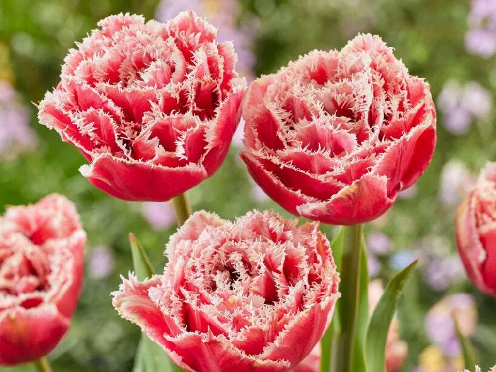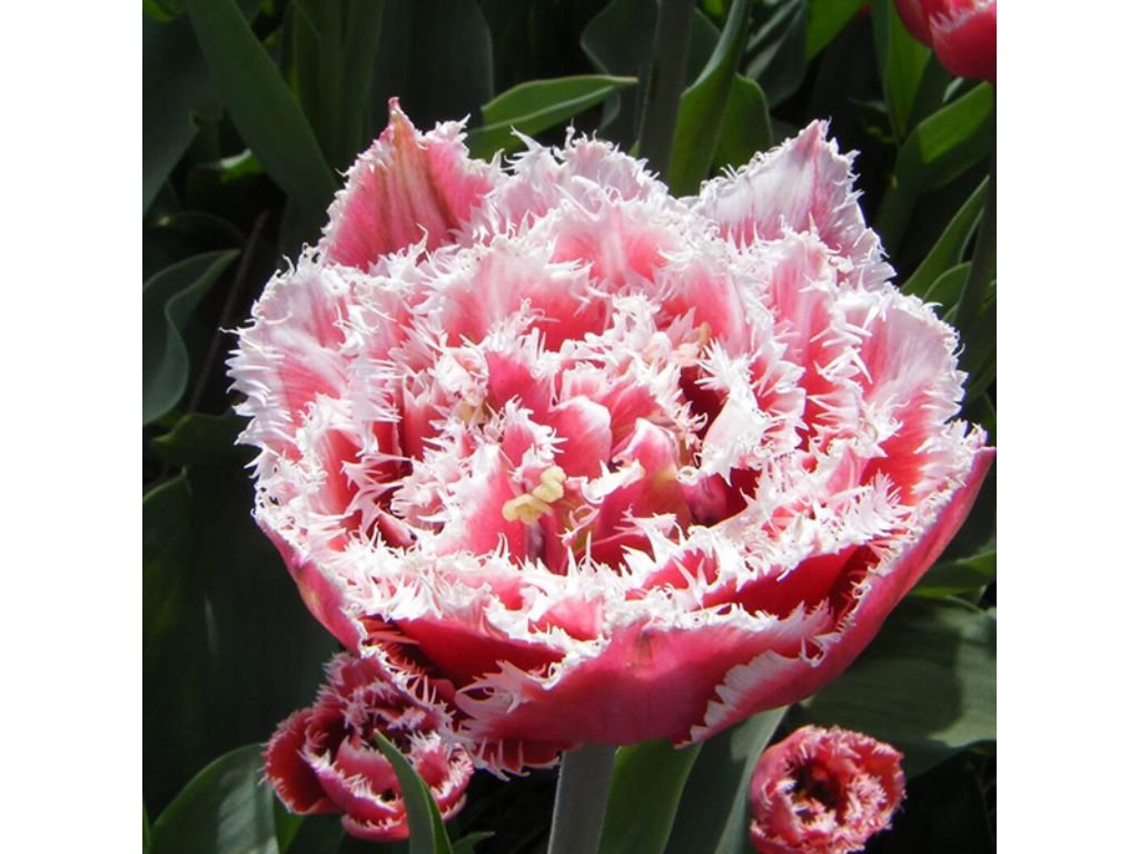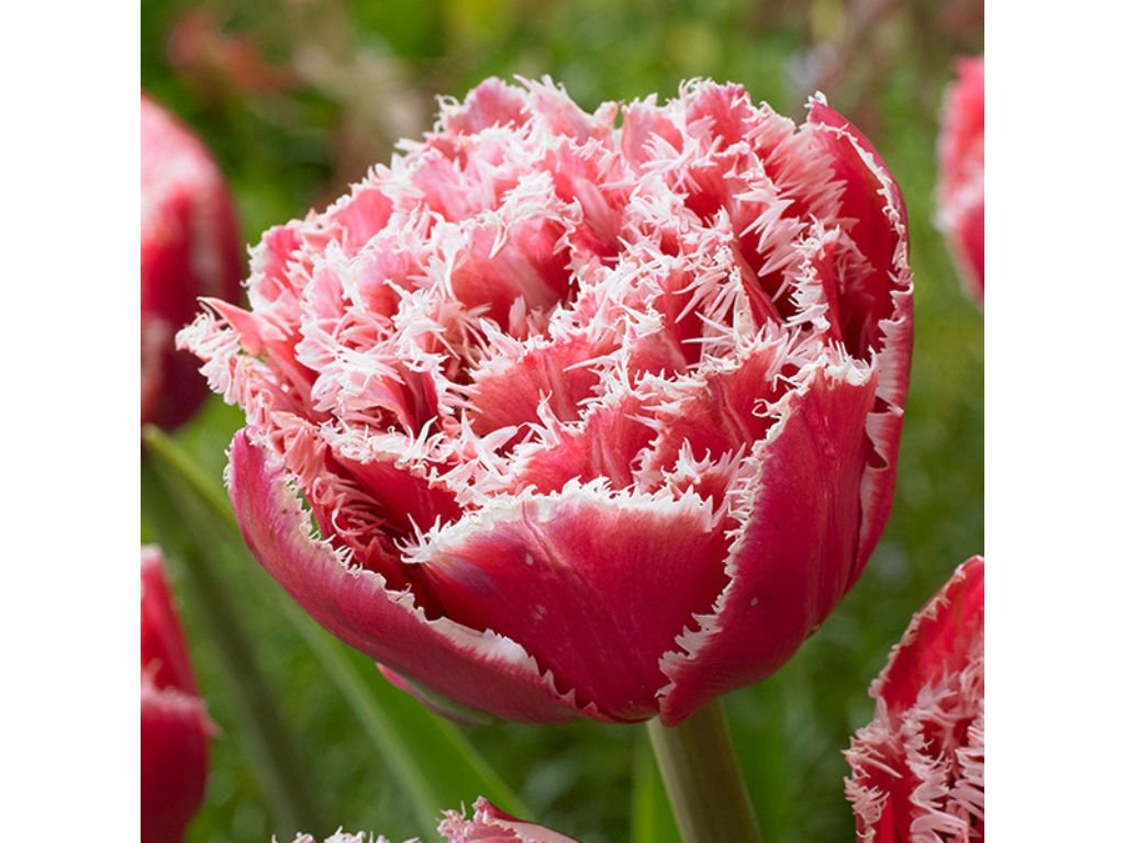 Triumph tulipán s kontrastnými kvetmi: červené lupene s výrazným bielym okrajom. Kvitne v apríli, výška do 45 cm, výborný na rez aj do skupín.