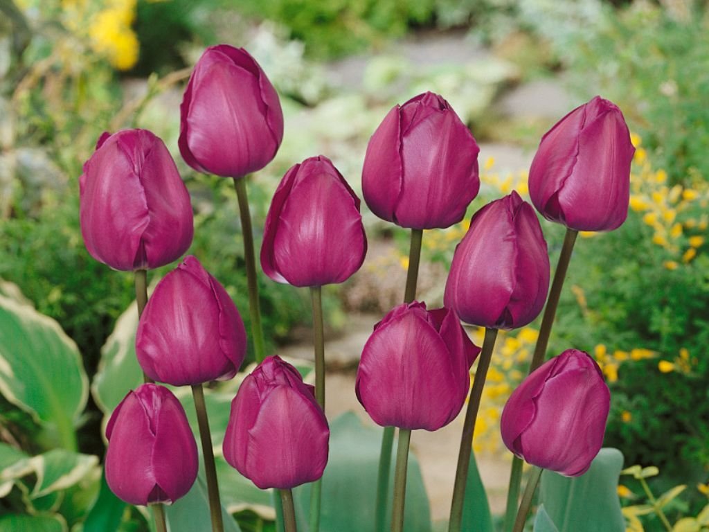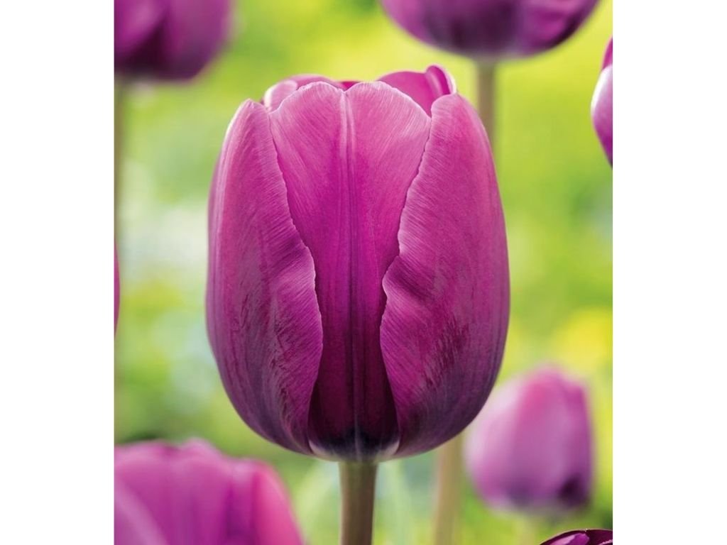 Elegantný Triumph tulipán s hlbokou purpurovou farbou. Vhodný do každého typu výsadby aj na rez.