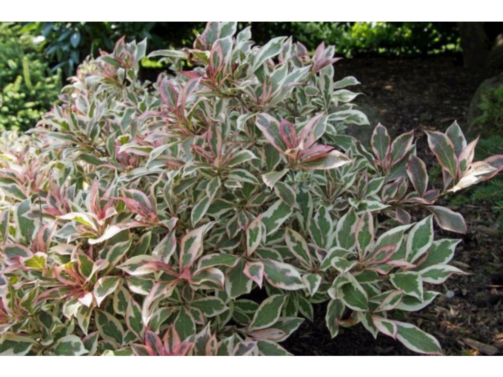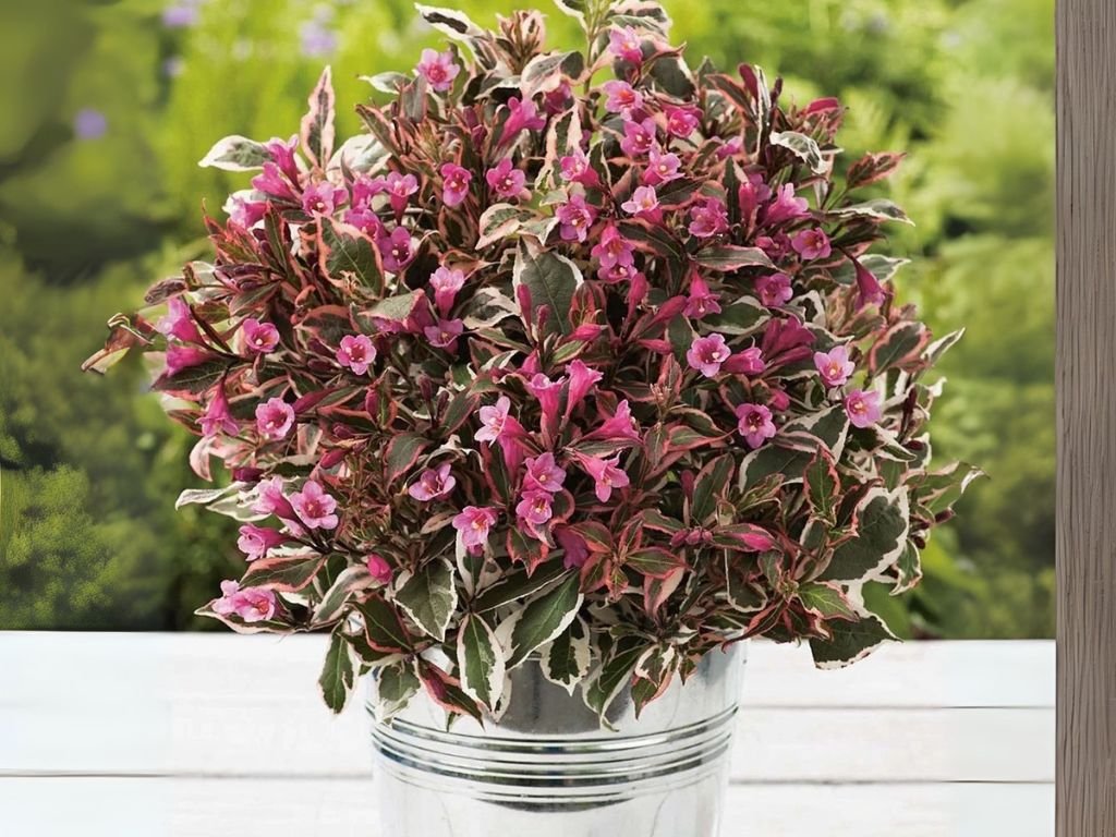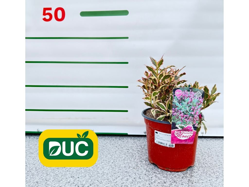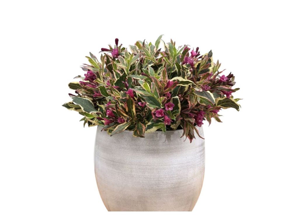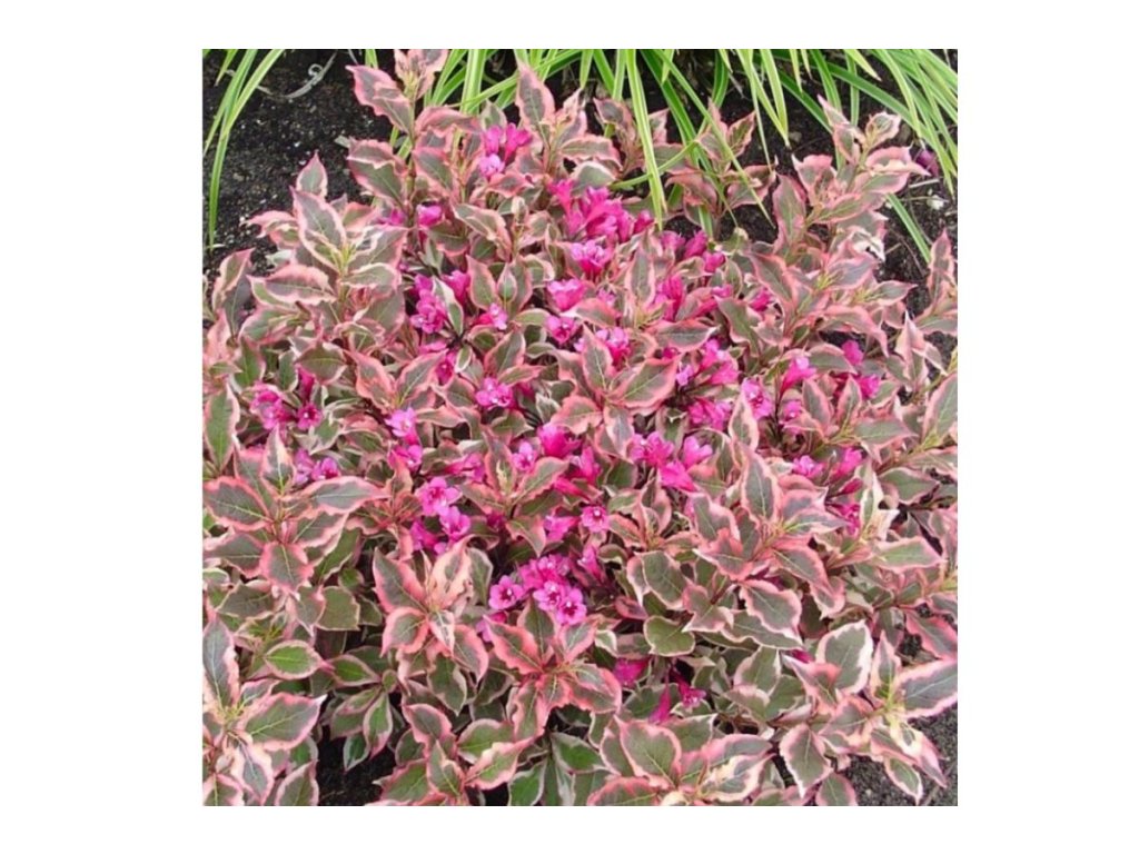Weigela florida 'All Summer Monet' je nízky, kompaktný opadavý ker s výrazným panašovaným olistením a jemnými ružovými kvetmi. Jej listy majú jedinečné sfarbenie – stred je svetlozelený až zelený a okraje sú smotanovo biele s jemným nádychom do ružova, čo vytvára dekoratívny efekt počas celej sezóny. Od mája do júna kvitne drobnými trúbkovitými kvetmi bledoružovej farby, ktoré sa objavujú aj počas leta v menšom rozsahu. Vďaka svojmu pomalému rastu a malému vzrastu je ideálna do menších záhonov, predzáhradiek, k lemovaniu chodníkov alebo na výsadbu do nádob. Ocení ju každý, kto hľadá elegantný, ale nenáročný okrasný krík s celosezónnym efektom.